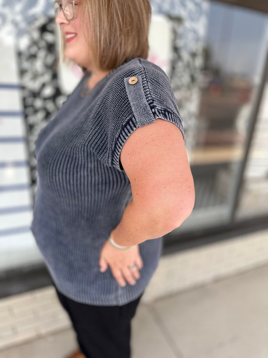 Ribbed & Relaxed Top - S-3X - Sky Blue