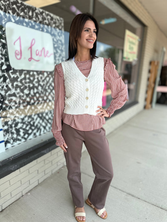 Gingham Grace Top - Rust