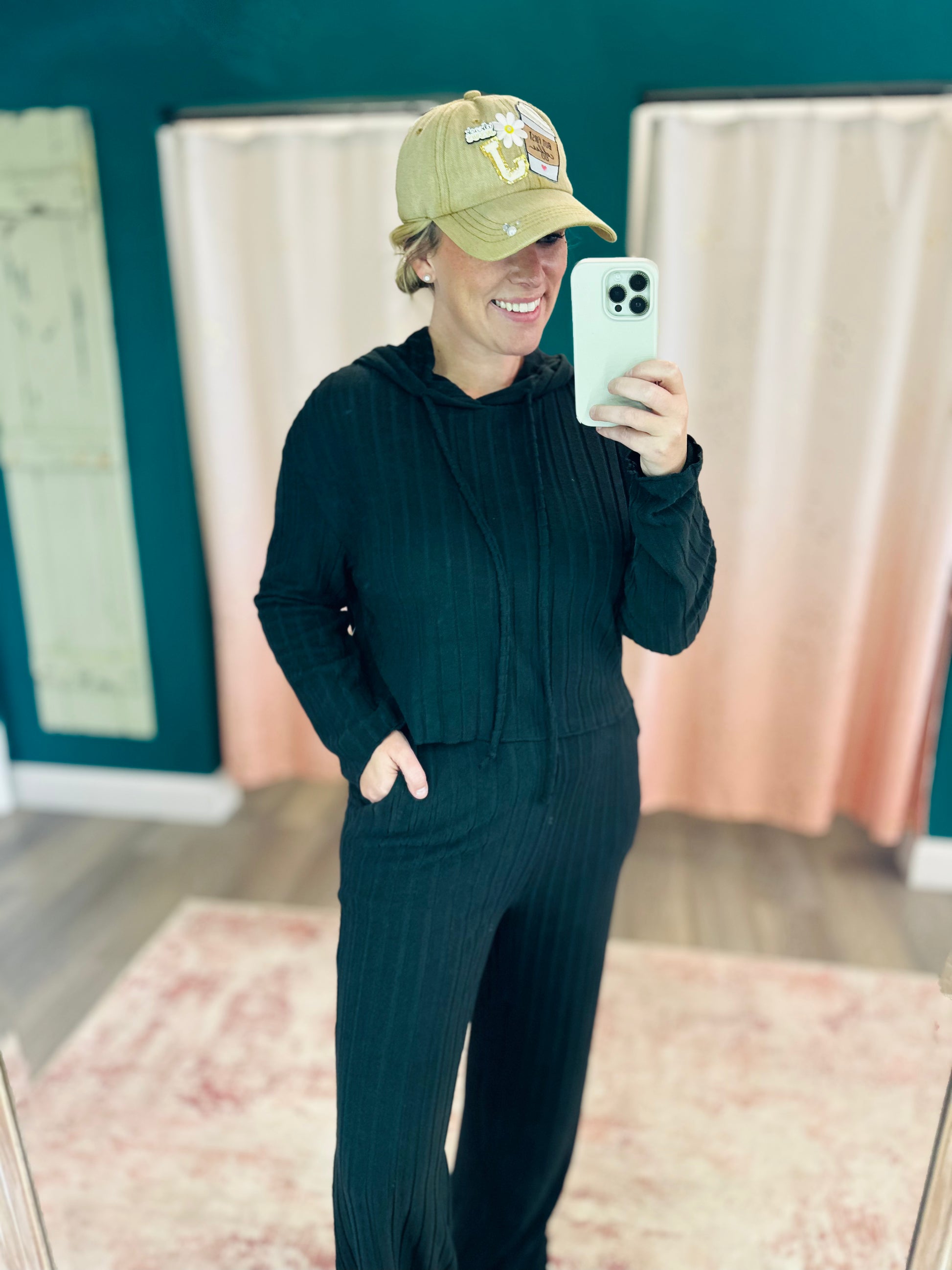 Stay snug and stylish whether you’re out and about, catching a game, or just lounging around. The perfect easygoing fall look to throw on and go!